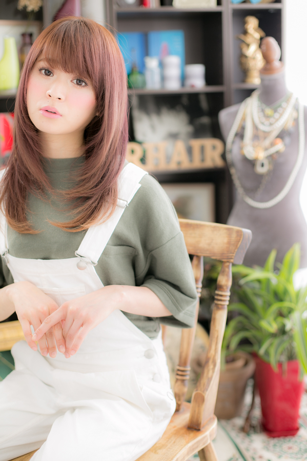 織り重なるレイヤーで,ストレートでも華やぐ立体感♪厚めのバングで少女のような可憐さを残せば,男女から好感度の高い愛されスタイルに。