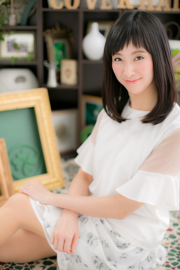 重めの黒髪スタイルも、短めの斜めにカットした前髪とツヤ感のあるストレートパーマでボリュームをダウンしているので重く見えません。カジュアルさもプラスのスタイルです。