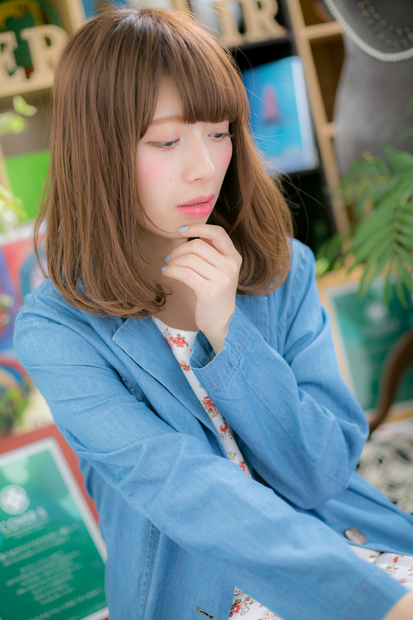毛先のほのかなワンカールとツヤカラーで明るさを出し、目の上ギリギリのバングで目元の印象度UP!きめ過ぎない自然なストレートがポイントです☆