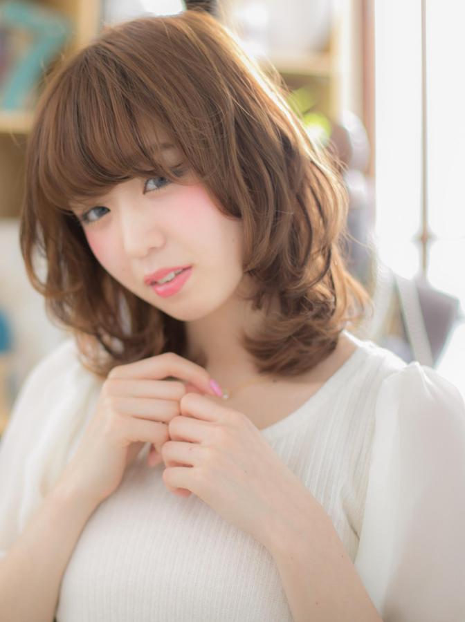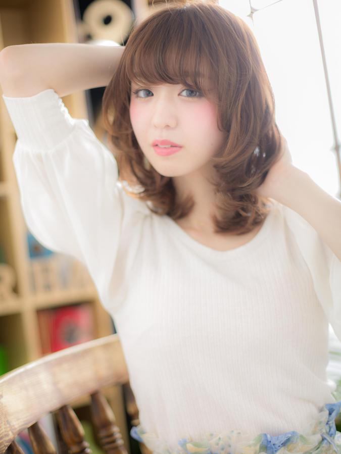 キュートでガーリーなふわふわミディスタイルは上司ウケもバッチリなのでオフィスでもOK!女の子らしさもぐんとUPするモテヘアです☆