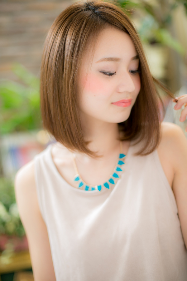 質感UPのストレートでさらつやストレートに♪柔らかい明るめカラーで肌色もぐんとよく見えます。縮毛矯正なら1日セットも乱れずにスタイルキープも嬉しい☆