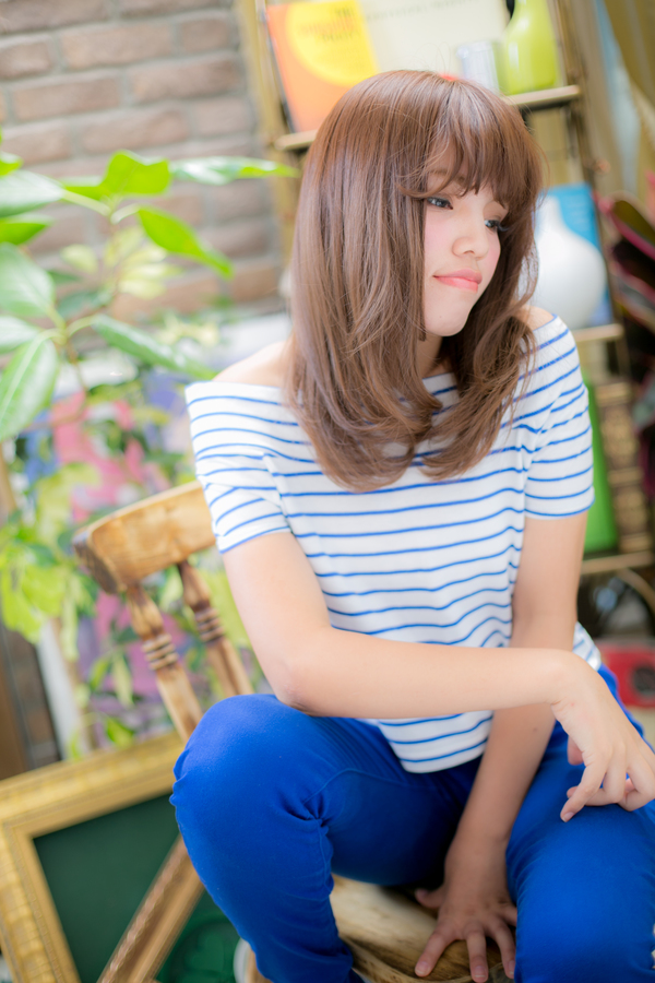 抜け感ある毛先にワンカールのついたふんわりスタイルでスタイリングも簡単!エアリー感あるアンニュイミディアムで、伸ばしかけの方にもオススメ。カラーはヌーディ感あるヌーディベージュで♪
