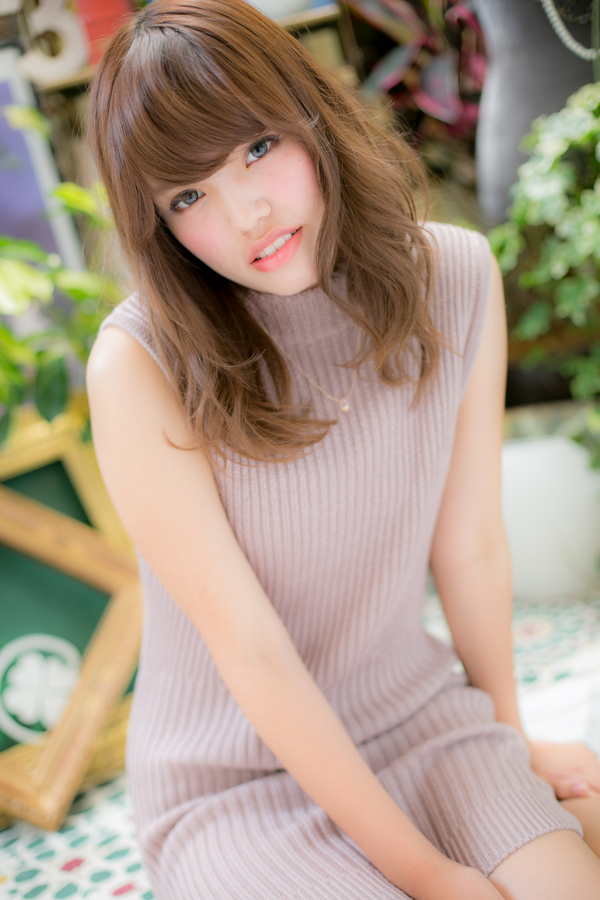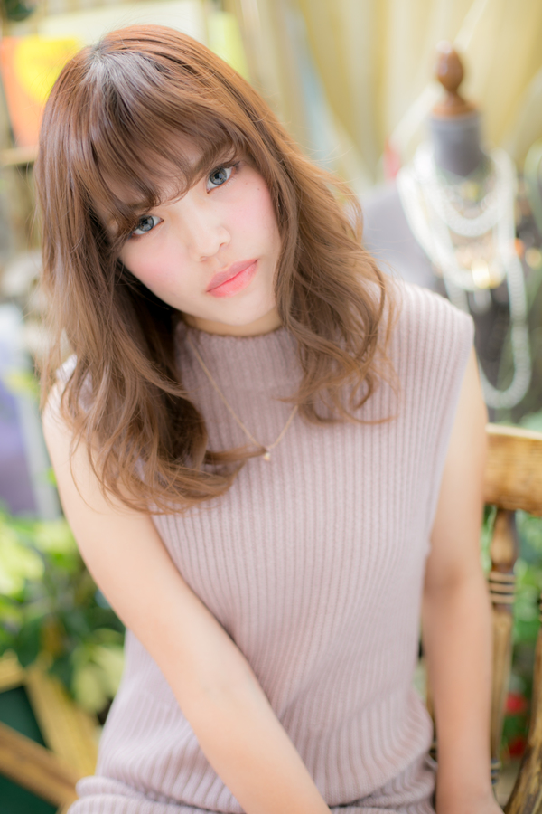 男女問わず人気のふわミディスタイル。前髪も少し強めに巻くことでスタイリングも楽ちんに♪透ける様な透明感あるクリアベージュカラーで柔らかさをプラス。