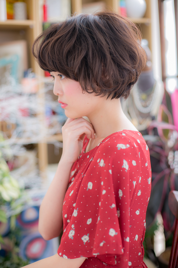 ナチュラルガーリーな雰囲気なのでショートやボブに初挑戦の方もOK。毛先をふんわりまとまる様にドライしたら軽くワックスやスプレーでセット。