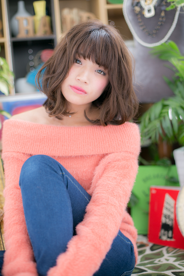 厚めのフリンジバングで目元を強調。サイドの毛流れで輪郭カバー。目力UPと小顔見せを叶えます。程良い抜け感あるリラクシーミディで、どこから見ても大人かわいいスタイルに。ベージュカラーやメルトカラーがお似合い。