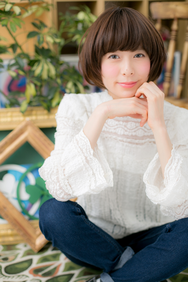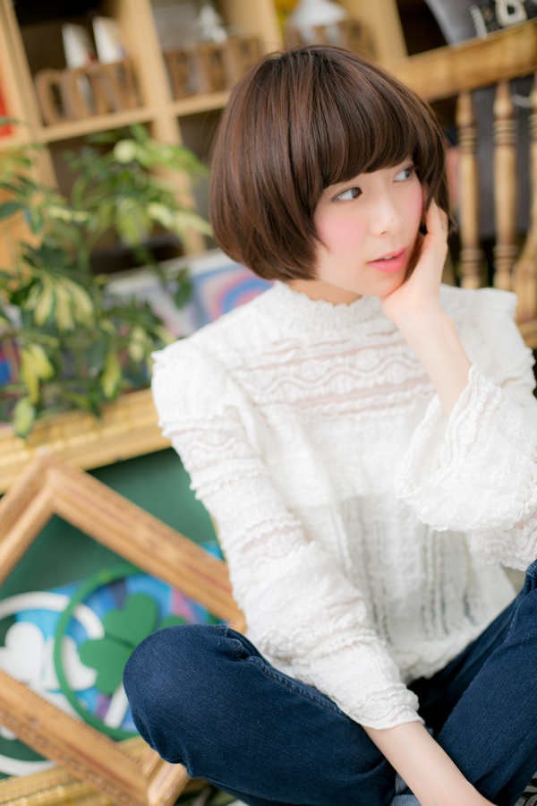 コロンとしたワンカールの丸みあるフォルムがキュートで個性的なラブガーリーボブ。ツヤカラーでさわやかな好感スタイルに。耳横にボリュームを持たせて小顔に見せて。厚めバングで目力UP!(メイク担当:北浦和店 棟方)