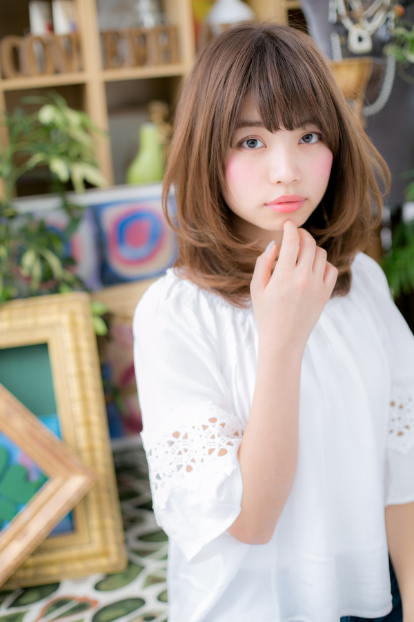 重めスタイルにふわっとしたワンカールを合わせて軽やかに。重軽MIXスタイルは、クラシカルにもルーズにもヘアアレンジできるので、ファッションの幅も広がります。ミルクティカラーやベージュカラーで顔周りを明るく♪ヒアルロン酸カラーは白髪にも対応可。