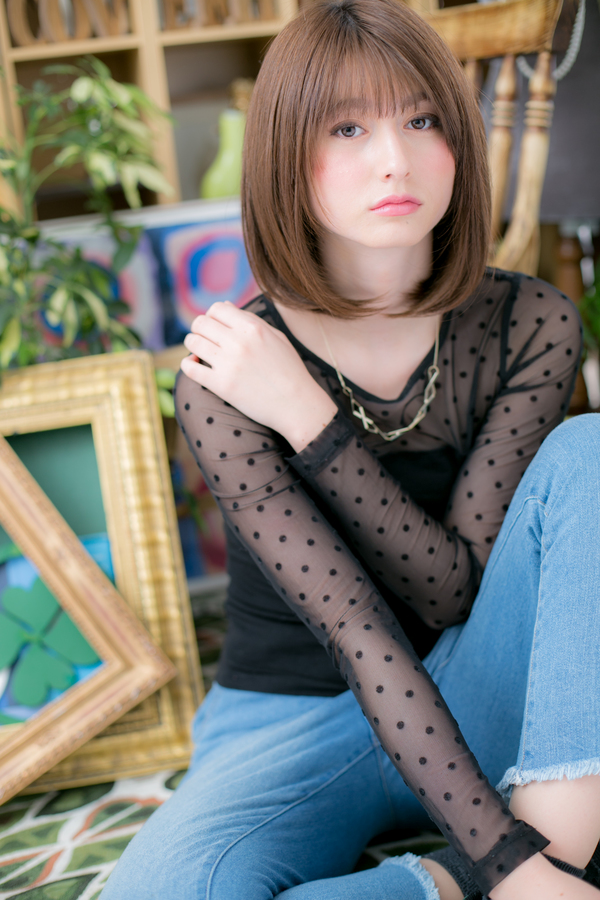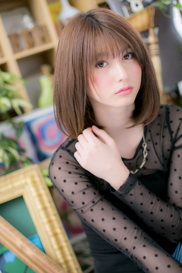 • かきあげバングナチュラルモード黒髪大人ボブ