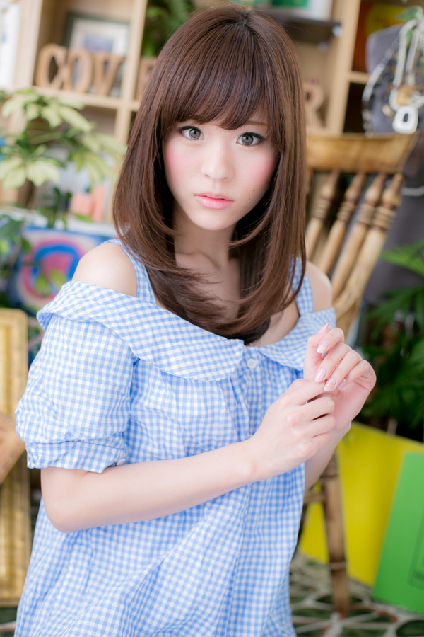 厚めのフリンジバングとツヤ感あるベージュカラーで、しっとりまとまる愛されセミディに。顔周りを包みこむサイドの毛流れで小顔に見せます。レイヤーで軽さを出し、重めスタイルでも大人かわいい重軽MIXストレートに♪