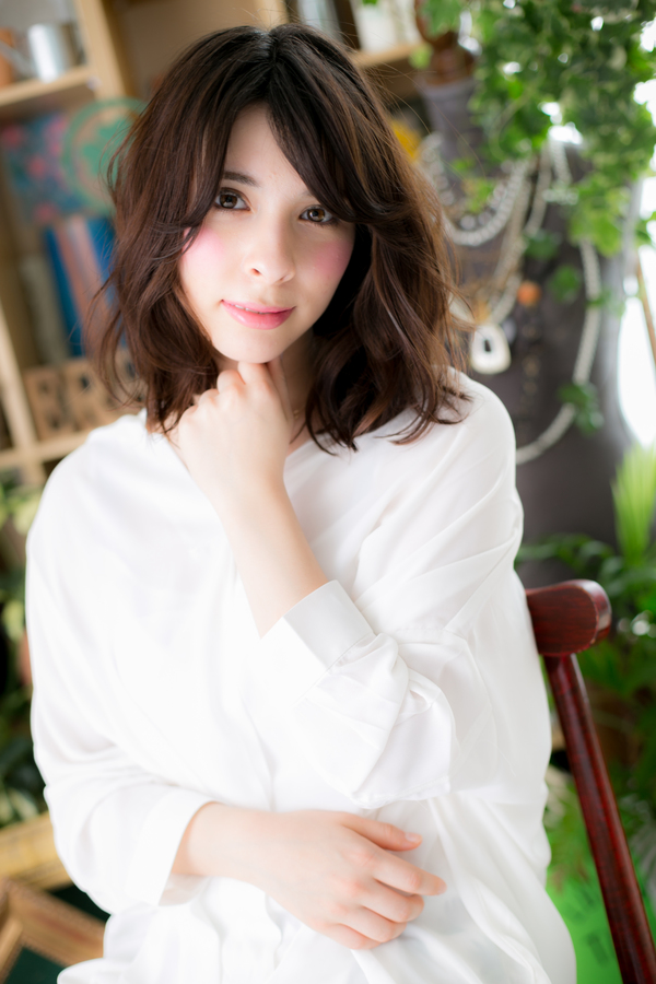 くせ毛風ニュアンスカールで、大人女子の抜け感と色っぽさを演出したエアリーミディ。頬にかかる毛流れで輪郭をカバーして小顔見せ。しっとりツヤ感あるモーブカラーやグレージュ、黒髪の重めスタイルもクラシカル。