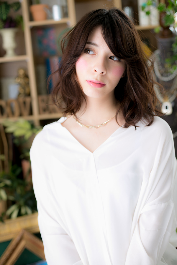 パーマがかかっているので、ドライ後にミルクやムースをつけるだけの簡単スタイリング。無造作なかきあげバングやセンターパートでCOOLに決めてもカッコイイ。ボブからの伸ばしかけやナチュラルミディからのイメチェンに◎