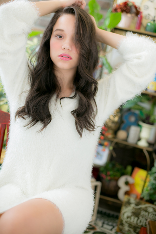 根元を少し立ち上げたかきあげバングと、ゆるやかに流れ落ちる大き目ウェーブの動きが色っぽい、大人女子のためのエレガントロング。アッシュ系で肌色を綺麗に見せて、美人顔の完成です♪