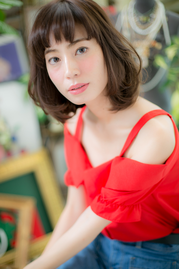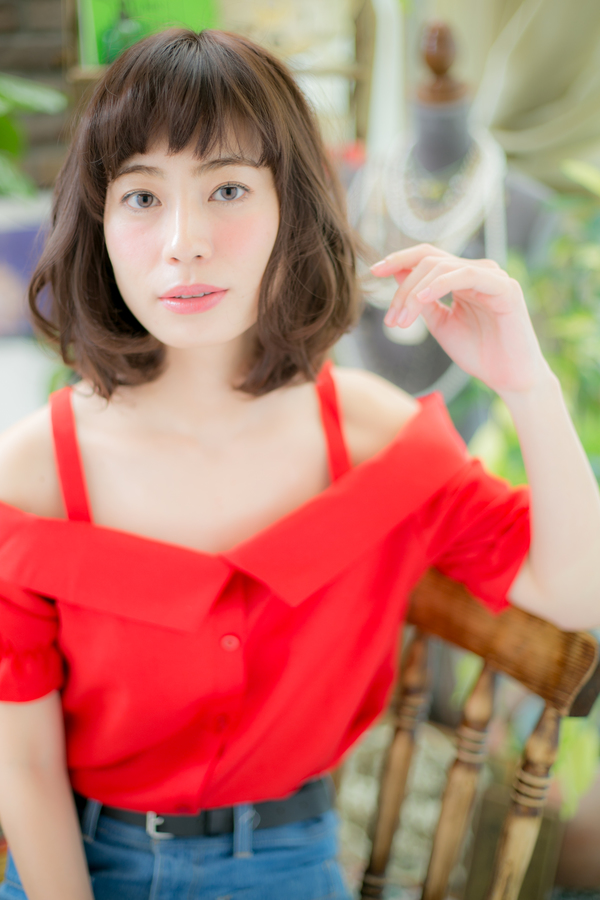 透明感あるシースルーバング♪大人かわいいを演出するエアリーカールがポイント。骨格をしっかり考え、ボリュームゾーンを決めることで小顔効果もバッチリ。