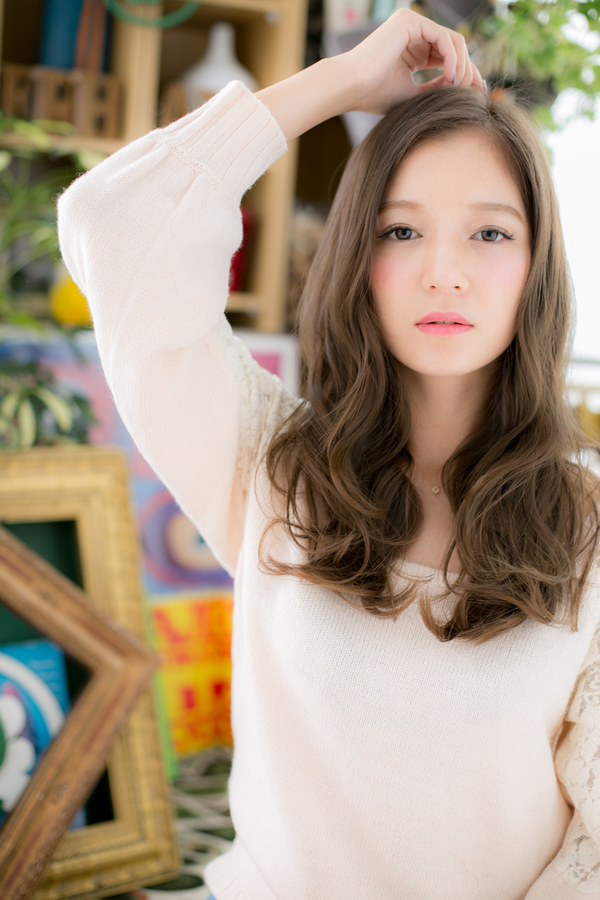リップラインから揺らめくくせ毛風カールがとびきりフェミニンな印象。輪郭カバーで小顔見せもバッチリなヘアスタイ♪ふわミディからの伸ばしかけにGOOD。大人かわいい耳かけや前下がりもヘアアレンジ!髪の色はグラデーションでトリートメントしたようなカラーリングで大人女子のファションにもおすすめ☆30代・40代にも◎(メイク担当:川口店 成田)