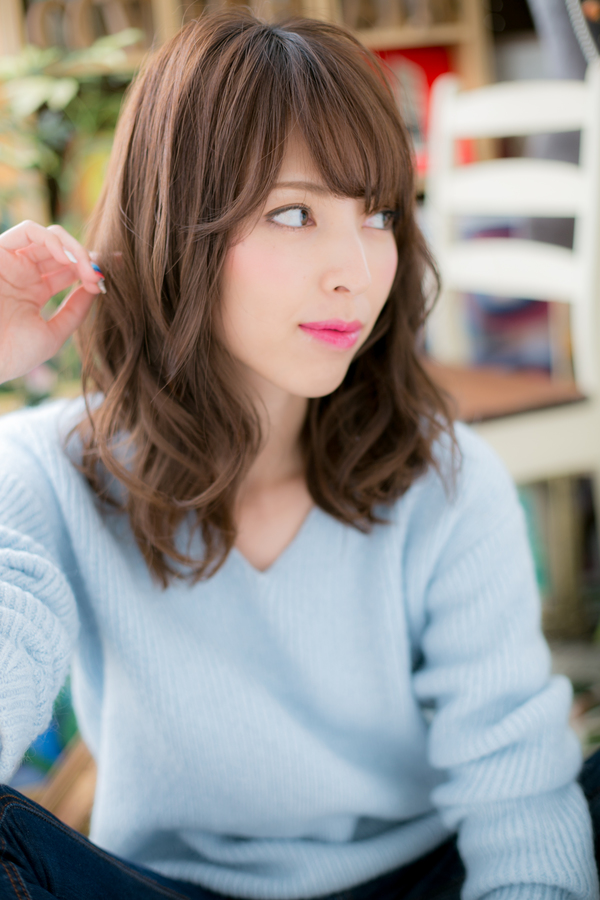 透け感ある斜めバング&くせ毛風パーマで色っぽかわいい印象のふわミディのヘアスタイ。ナチュラルな抜け感スタイルは好感度バッチリ。厚めバングや耳かけで大人かわいい雰囲気にヘアアレンジもOK。似合わせカット&前下がりで小顔で面長の方におすすめ!トリートメントしたようなカラーリングで髪の悩みも解決する!人気のカラーやピンク系のカラーもおすすめ!30代・40にも◎