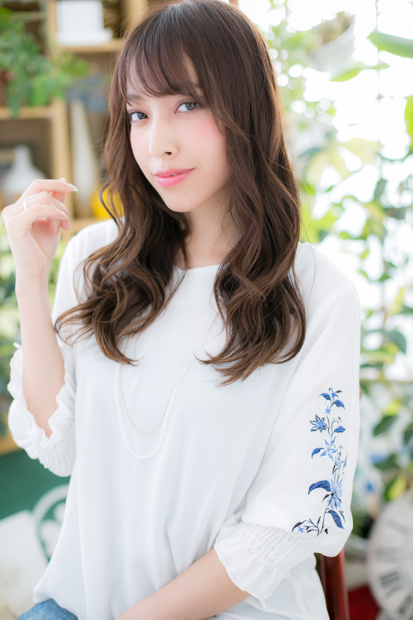 透け感ある斜めバングにボリュームカールでグラマラスなレディヘアスタイルに。結婚式や二次会でも映えます。大人女子のコーデも完成!くせ毛風パーマで抜け感を出したり、大人かわいい耳かけ・ふわミディも◎トリートメントしたようなカラーリングで髪の毛の悩みも解決!カラーはアッシュグレーやブリーチなしもおすすめ。30代・40代にも◎(メイク担当:北浦和店 棟方)