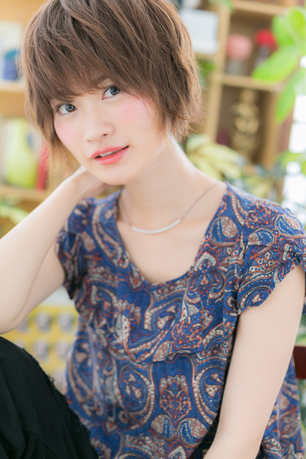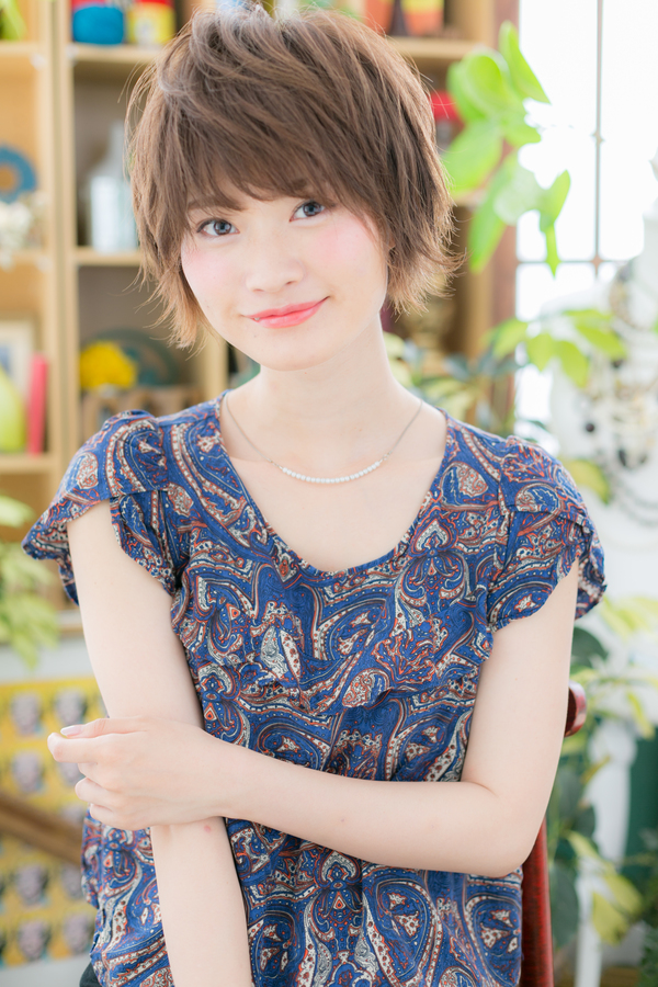 トップから流した厚めバング&斜めバングで目力強調。サイドの前下がりラインで小顔みせで大人女子のコーデを完成。美人度UPの外国人風小顔エアリーショート。くせ毛風のやわらかな動きでフェミニンに♪耳かけも◎トリートメントしたようなカラーリングで髪の毛の悩みも解決!30代・40代にもおすすめ!(メイク担当:北浦和店 棟方)