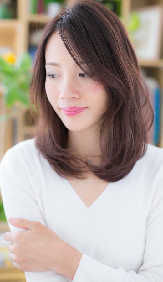 ノーバングでこなれ感を演出したワンカールセミディのヘアスタイル。ピンク系カラーでフェミニンに仕上げて大人女子のコーデを完成。前下がりで小顔にメイク。耳かけしたりラフなヘアアレンジもGOOD。トリートメントしたようなカラーリングで髪の毛の悩みも解決!人気のカラーやアッシュグレー、ブリーチなしもおすすめ☆30代・40代にも◎(メイク担当:川口店 成田)