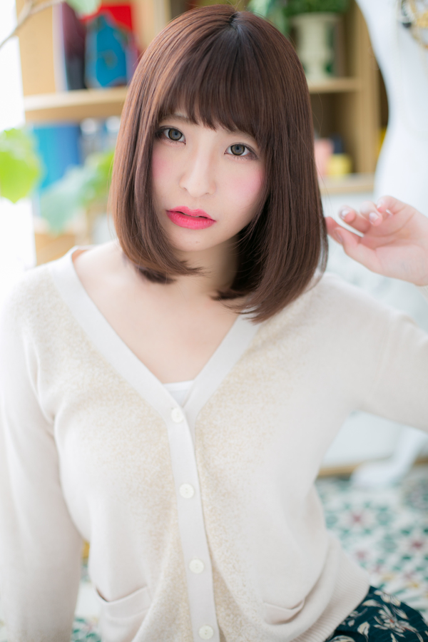 厚めバングで目元を印象つけたワンカールのヘアスタイル。くせ毛風ふわミディや耳かけで大人女子のファッション度UP。ミディアムヘアを際立たせるグラデーションやベージュで髪の毛の悩みも解決!40代のエラ張り対策にもおすすめ!(メイク担当:川口店 成田)