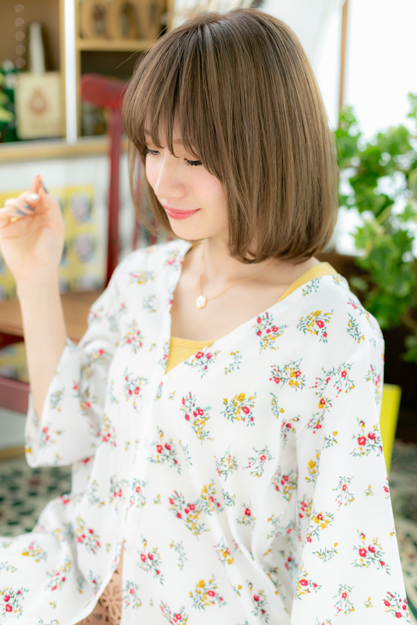 斜めバングや厚めバング,ジグザグバングで目力UP/前下がりで小顔に見せます/ナチュラルボブやフェミニンボブ,大人ボブや前下がりボブからのイメチェンにGOOD/耳かけしても大人かわいい/20代/30代/40代/50代