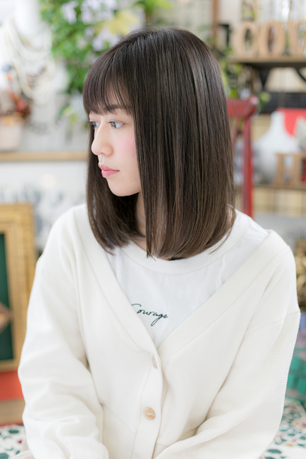 シースルーバングで小顔見せ効果とトレンドを取り入れたヘアスタイルで大人女子のファッション度UP。トリートメントしたよなカラーリング髪の毛の悩みも解決!人気のカラーやアッシュもおすすめ!30代・40代にも◎(メイク担当:川口店 岩渕)