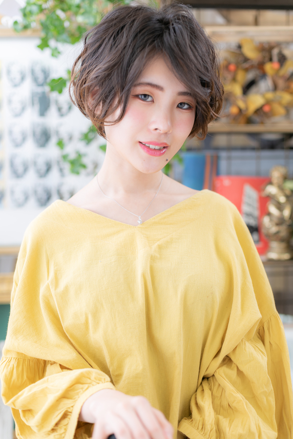 くせ毛風パーマで朝楽の簡単スタイリング。黒髪でクラシカルにしたり、耳かけで大人女子のコーデも完成。トリートメントしたようなカラーリングで髪の毛の悩みも解決!人気のカラーや思い通りの茶色もおすすめ!30代・40代にも◎(メイク担当:北浦和店 今野)