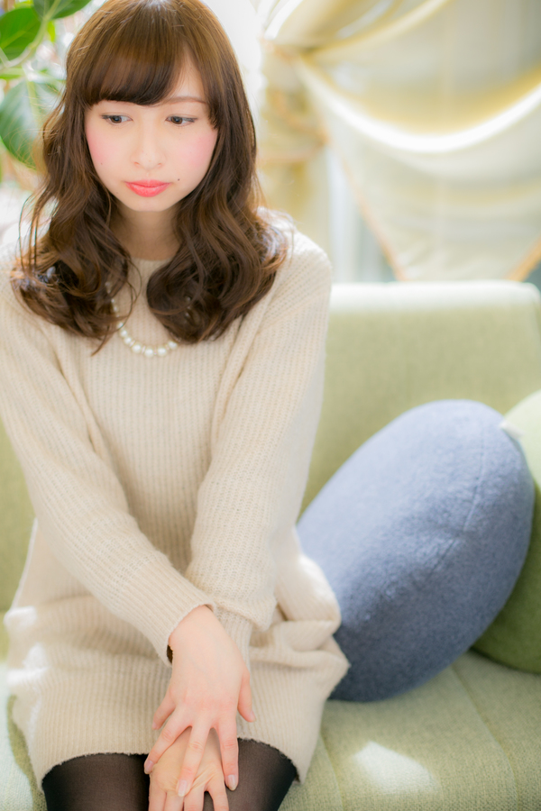 あまり段は入れないロングスタイル。ロッドをMIXに配置することによって、乾かしただけで決まるMIXウェーブに。前髪も根元から立ち上げるようなパーマで、周りとは一味違うスタイルに☆