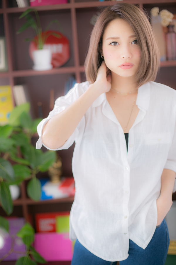 • かきあげバングナチュラルモード黒髪大人ボブ