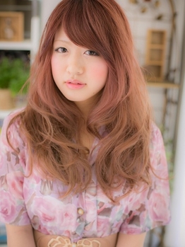 女の子らしさと、肌の透明感を上げてくれる、人気のピンクベージュがポイントのスタイル。明るめカラーはトリートメントでしっかりケアして、艶感をキープするのが、可愛く魅せるポイント!