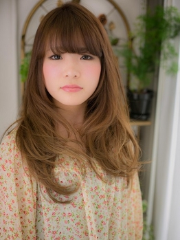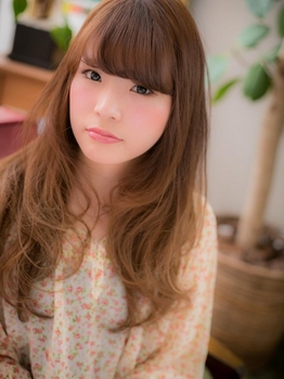 カラーはAsh系から毛先に向かってのグラデ―ションカラー。ゆるーいウェーブでフェミニンな雰囲気に。前髪は少し重めに作ることで、キュートな雰囲気もプラス。TPOに合わせて、クール系にもアレンジ可能なオススメスタイルです。