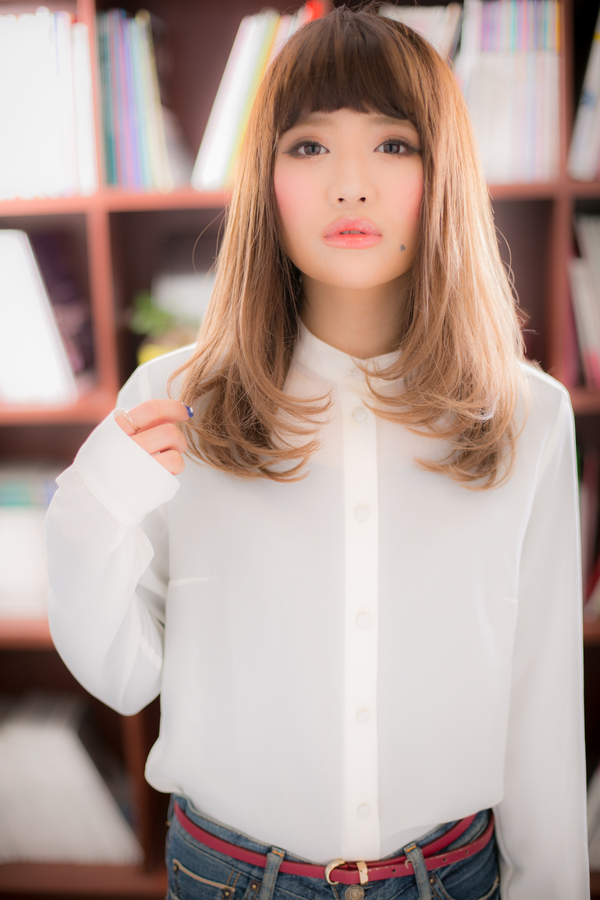 眉上前髪で目力UP♪グラデカラーの個性派ロング