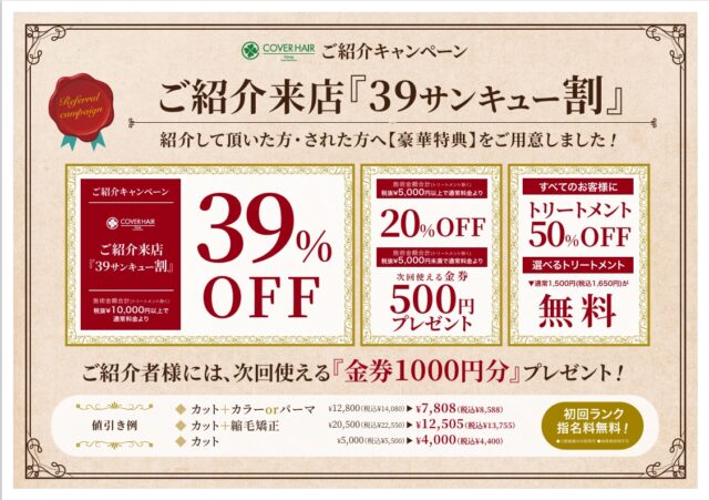 次回以降ご利用頂ける1000円分の金券プレゼント
