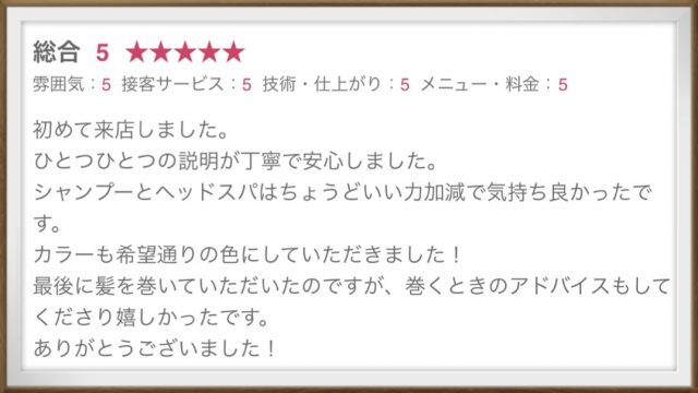 シャンプーとヘッドスパはちょうどいい力加減で気持ち良かったです。