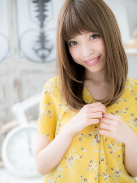 透明感溢れるワンカールは、目力強調の厚めバングとツヤカラーでガーリーに。前下がりでスッキリ小顔見せ。耳かけしたり、斜めバングでフェミニンにしても大人かわいい。くせ毛風カールのふわミディにイメチェンもOK。