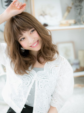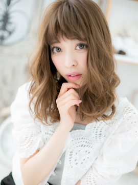 Aラインシルエットのボリュームカールで小顔に見せ、斜めバングや厚めバングで目力UPさせた甘え顔スタイル。大人かわいい耳かけや抜け感あるラフなヘアアレンジも色っぽい。くせ毛風のとろみカールのふわミディも旬。