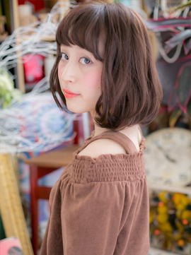 少し前下がり気味のボブスタイルに毛先のワンカールがポイントのドール系個性派ボブ。オシャレ感あるピンクアッシュが今の時期にピッタリ☆重めスタイルも空気感ある毛量調整でエアリー感あるワンレンボブに♪