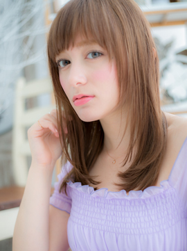 ツヤ感が光るナチュラルストレート。ずっと触っていたいなめらかさ♪男女問わず人気の好感ミディです。肌をキレイに見せてくるクリアアッシュやミルクティアッシュもトレンド。(メイク担当:COVER HAIR グループ 成田)