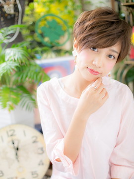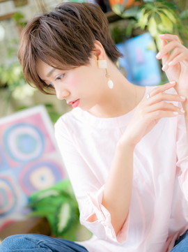 くせ毛風カールでカジュアルグラマラスに格上げした大人アシンメトリーショート。斜めバングや厚めバングで目力UP!前下がりフォルムで小顔見せ♪360度どこから見ても大人かわいい。耳かけしても美人顔ボブに♪