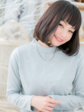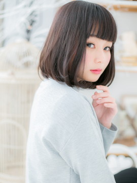 透け感あるシースルーバングでガーリーに、前下がりで輪郭をカモフラージュして小顔に。重めスタイルの黒髪クラシカルボブを軽やかに見せます。ワンカールでふわっとボリューム感を出してグラマラスに。耳かけもcute。