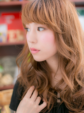 ゆるく大きめのウェーブが女っぽさをUPさせます♪前髪にもゆるくパーマがかかっているので、フェミニンな女性らしさがキラリ☆
