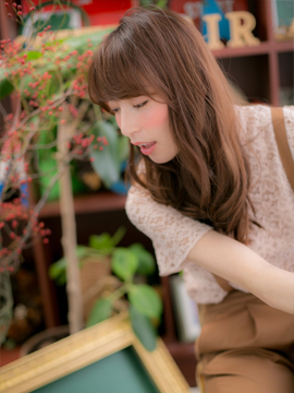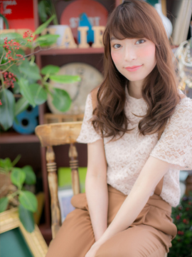 たっぷりと揺らめくカールがお人形さんみたいにカワイイ、王道のガーリーロング。女の子なら一度はやってみたい憧れのスタイル♪ランダムカールでナチュラル感を残し、親しみやすい雰囲気に。長めの前髪は目力を強調してくれるのでモテ顔に☆