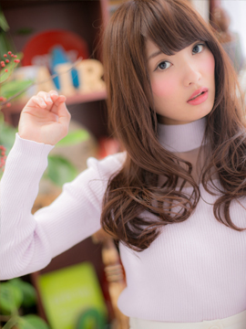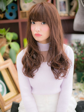 街中で目立っちゃうこと間違いナシ!のイイ女風のラグジュアリーロング。そこにパッツンバングをオンすることで、ぐっとガーリーでカジュアルな雰囲気に。カワイイもセクシーもイイとこ取りのモテスタイルなので、メンズウケも女子ウケもバッチリです♪