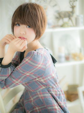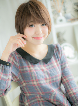 丸みとツヤのいいところどりスタイルは男女から好印象☆厚めバングで小顔効果もバッチリ。柔らかオレンジベージュカラーが優しい印象にも見せます。