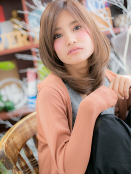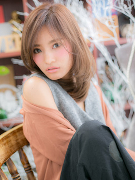 モテ度高いベージュ系カラーとさらさらセミディスタイルは失敗なし!ひし形の黄金バランスにプラス、フェイスラインもカバーできちゃう嬉しいポイントも。