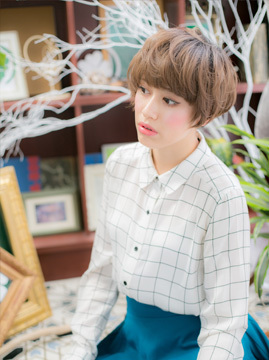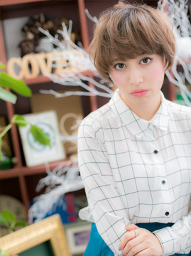 トップの長さと襟足の短さで頭の形をキレイに見せます。毛先のワンカールがペタンとしがちな髪質の方にも自然と立体感のでるスタイルに。