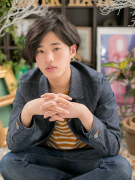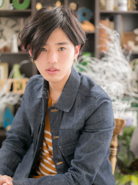 ラフで無造作に仕上げた七三ミディ。しだれ落ちるサイドの髪がセクシーな男の色気を演出。耳かけで顔周りをスッキリさせて清潔感と好感度をプラス。黒髪で凛と仕上げても、アッシュブラウンでソフトな雰囲気にしてもGOOD!ニュアンスパーマも大人っぽい。
