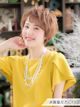 マッシュボブベースのトップにレイヤーを入れ、柔らかさと立体感を出しています。ふんわりとしたカールとピンク系のカラーで、フェミニンな香り漂うワンランク上のモダンショートに。シースルーバングだけでなく、ベビーバングや斜めバングも大人かわいい。