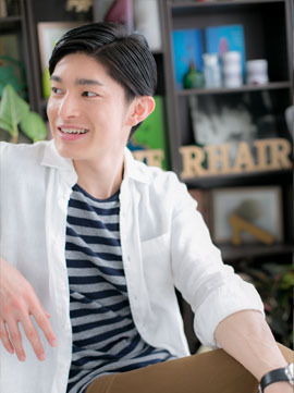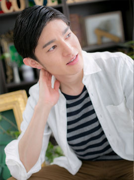 サイドパートの刈り上げで毛量調節をして、スッキリ爽やかに。ビジネスシーンでもOK!七三でカッコ良く仕上げたウェットショートです。オフの日は前髪を無造作におろしてもGOOD!