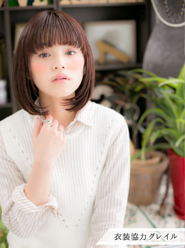 暗髪にシースルーバングと内巻きのワンカールで、幼さの残るグッドガールな仕上がりに♪濡れ感あるツヤ髪でほんのり色っぽさもプラス。似合わせカットで厚めバング、ベビーバングもOK!