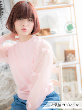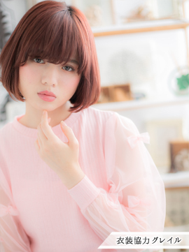 シンプルなブラントカットのラインが旬なナチュラルボブスタイル。直毛の方はアンニュイカールでくせ毛の様にワンカールをつけても◎ガーリーな重めスタイルです。厚めバングが小顔効果も引き出します。